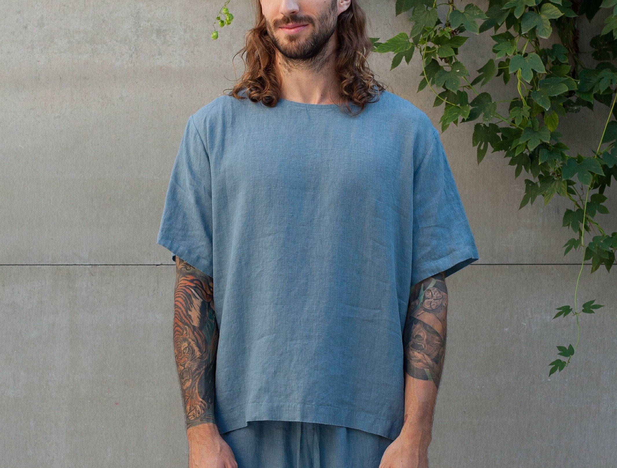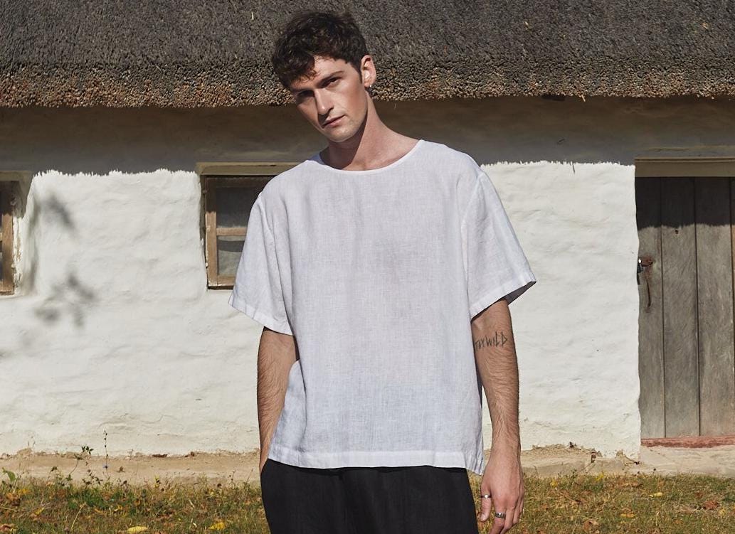 Men’s Linen T Shirt Abies. Relaxed Fit. Crew